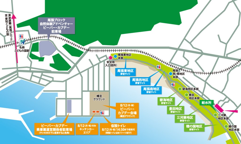 名鉄蒲郡線「こどもの国駅」近くの東幡豆特設駐車場に車を停めて会場までお越しください。